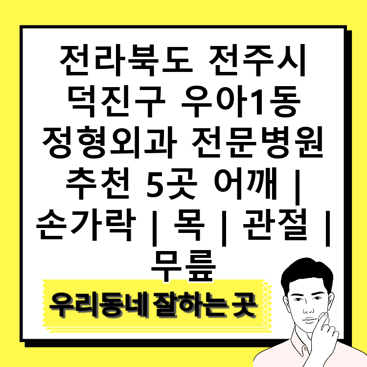 정형외과 전문병원을 찾는 일은 많은 사람들이 겪는 어려운 문제입니다. 특히 어깨, 손가락, 목, 관절, 무릎과 같은 특정 부위의 통증은 일상생활에 큰 영향을 미칠 수 있습니다. 전라북도 전주시 덕진구 우아1동에는 다양한 전문병원이 있어 환자들에게 맞춤형 치료를 제공합니다. 이 글에서는 해당 지역에서 추천할 만한 정형외과 전문병원 다섯 곳을 소개합니다. 각 병원의 위치와 특징을 통해 여러분이 필요로 하는 최적의 의료 서비스를 선택하는 데 도움을 드리겠습니다.
